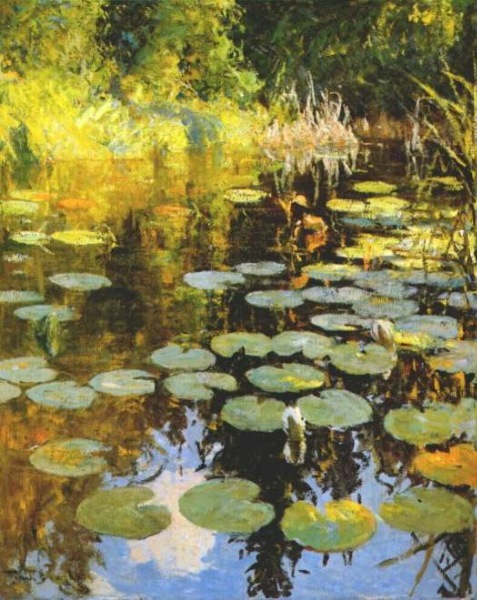 De l’eau, des nymphéas (des nénuphars): ça doit être un Pierre Bonnard. Regardez à l’avant-plan, les feuilles de nénuphars flottent au-dessus du ciel bleu. Une vraie merveille.