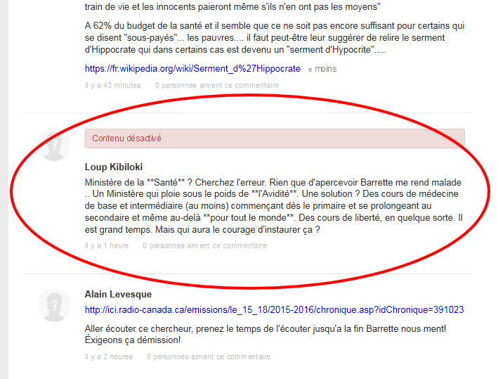 b) La censure à Radio-Canada — notamment celle des commentaires des usagers, mais pas seulement
