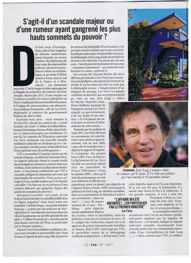 Ci-dessous. Trouvé ici (archivé et reproduit par François , 5 avril 2013.) Reportage de Nathalie Gillot, Armel Mehani, François Croz. C’est un article publié en France dans VSD, no 1857, 28 mars-3 avril 2013, page 33.