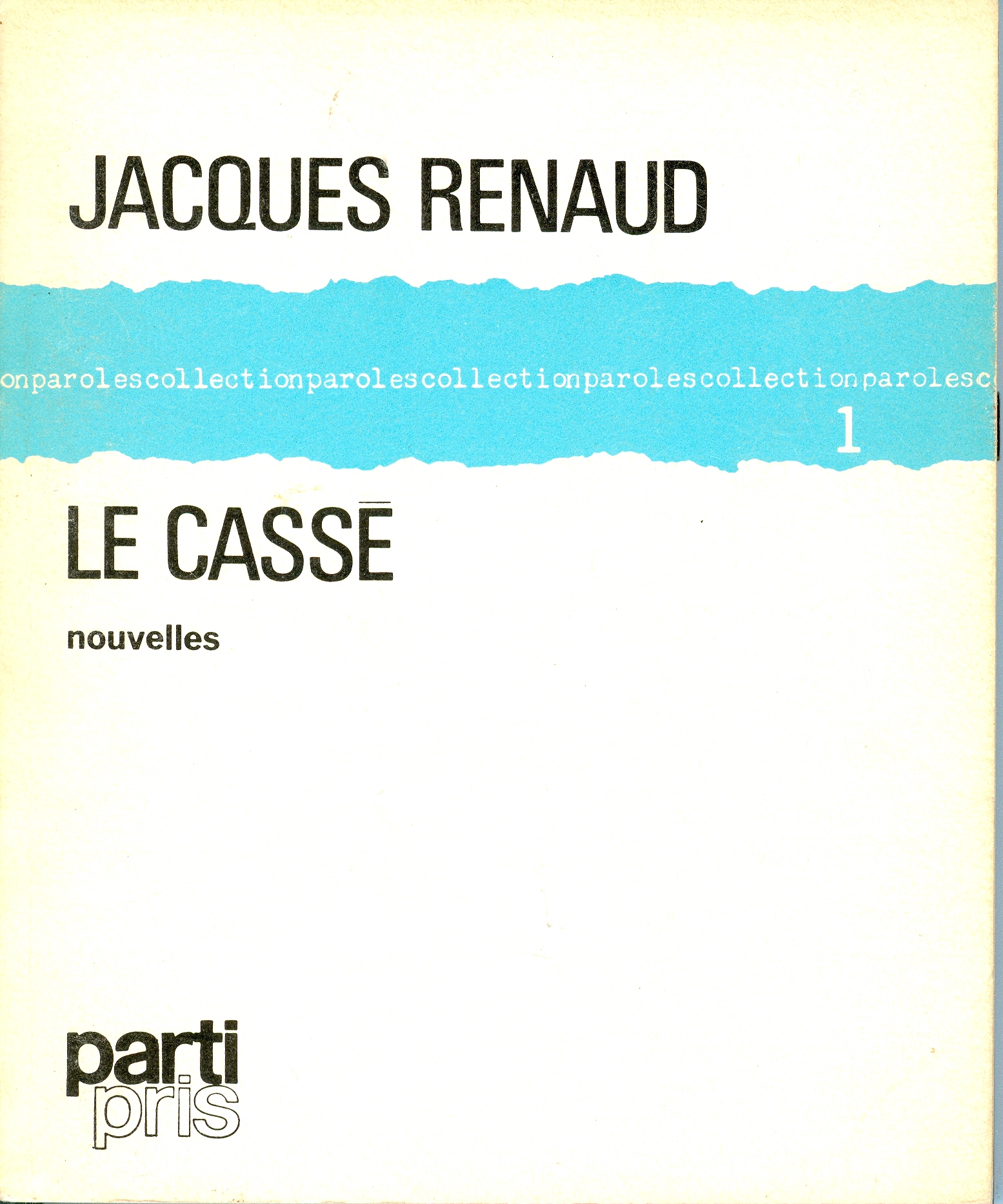 Puis le «Cassé faussé» (#2) est apparu en 1976, toujours aux éditions Parti Pris, et a été réimprimé (un nombre également incalculable de fois …), et diffusé même après la publication, en 1990, du faux Cassé (#3) dans la collection Typo des Éditions de l’Hexagone.