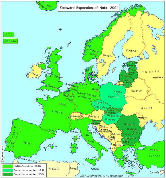 L’agressive expansion de l’Otan vers la Russie. Données de 2004.
