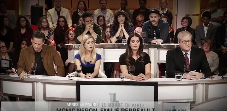 Note: La plupart des illustrations proviennent de l’émission Tout le Monde en Parle, 22 octobre 2017. Vidéos en fin d’article. On dénonçait deux “mâles dominants” québécois pour “harcèlement sexuel”.