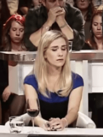 Mimétisme de la Mater Dolorosa. Au bord de la sempiternelle pleurniche. Vont-elles finir par sortir de ce cirque ridicule ? ( Saisie d’écran, Tout le Monde en Parle, 22 octobre 2017, Radio-Canada.)