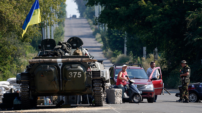 Ukrainian soldiers guard a checkpoint near the town of Debaltseve in the Donetsk region August 4, 2014 (Reuters / Sergey Karpukhin)