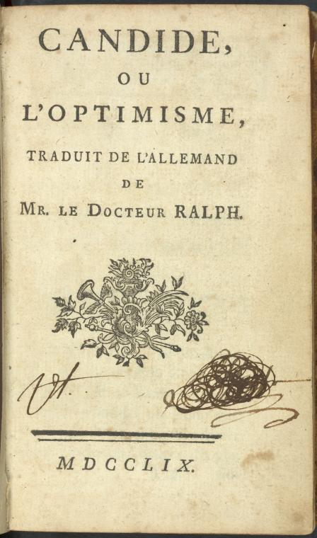 Candide (liens vers le texte du roman, plus bas) a été publié pour la première fois sous le pseudonyme de «Docteur Ralph», ou «Mr. le docteur Ralph», à Genève, en Suisse, en janvier 1759.