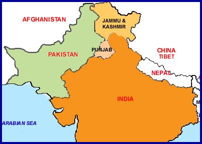 Punjab, North of India, East of Pakistan and Afghanistan.