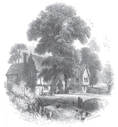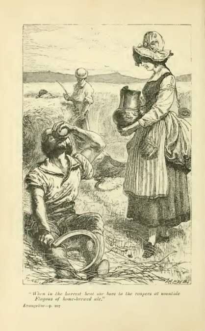 “Firmly builded with rafters of Oak, the house of the Farmer .. ” Illustration: engraving by Myles Birket Foster executed for Évangéline.