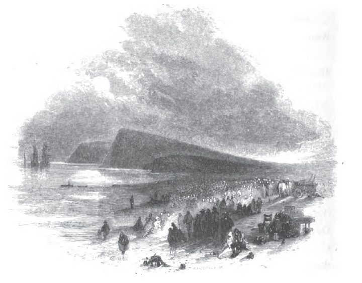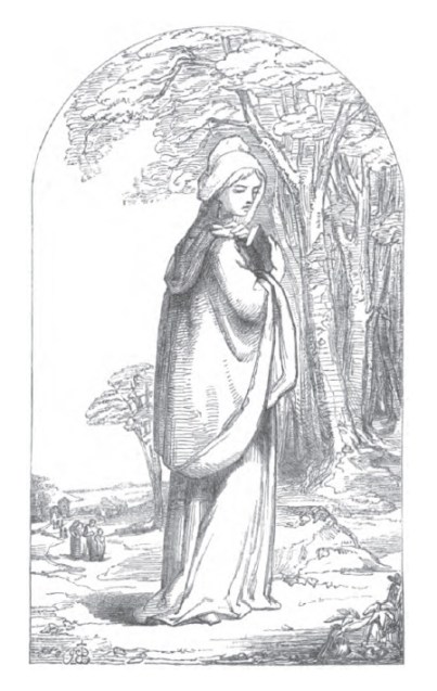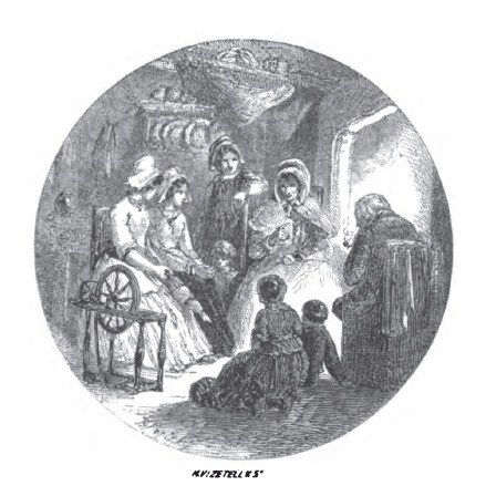 ” Maidens still wear their Norman caps and their kirtles of homespun, And by the evening fire repeat Évangéline’s story .. ” Illustration by Birket Foster, wood angraving.