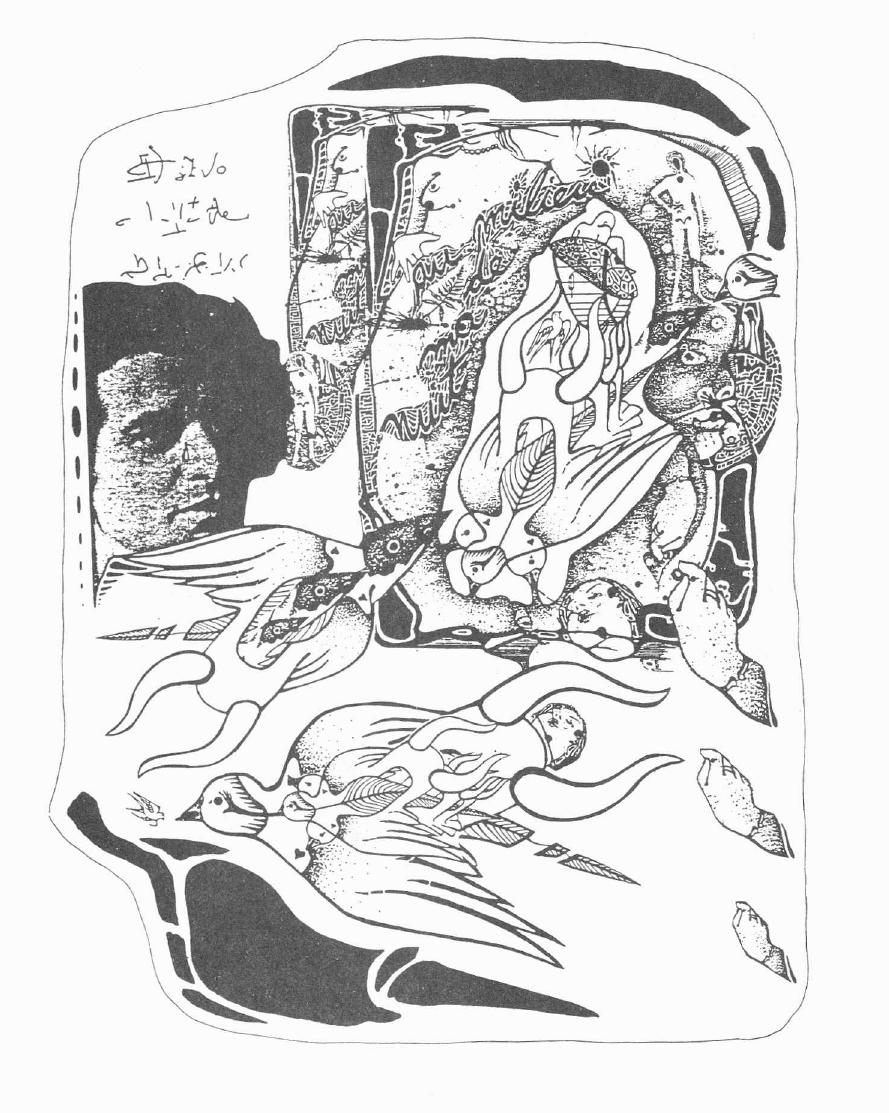 guidé dans l’arche-barque où devisaient de grands corbeaux.